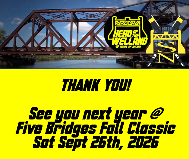 September 27: SNRC Head of the Welland – Five Bridges Classic Regatta. Welland |